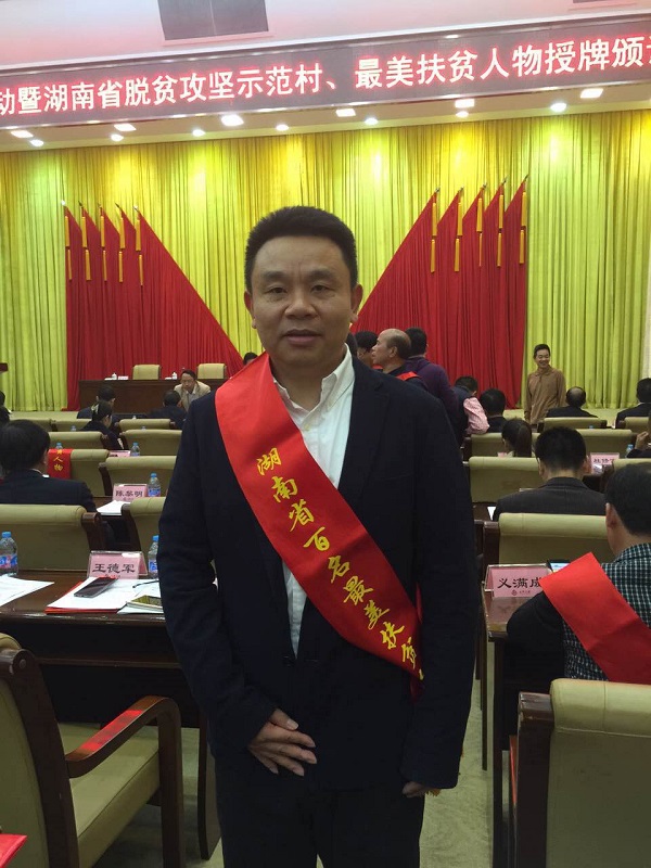 2016年10月14日,湖南長沙“扶貧日宣傳活動暨湖南省脫貧攻堅(jiān)示范村、最美扶貧人物授牌頒證儀式”在湖南九所賓館會議中心隆重舉行。參加會議的主要領(lǐng)導(dǎo)有省人民政府副省長戴道晉、省政府副秘書長曹英華、省扶貧辦、湖南日報(bào)社等單位主要負(fù)責(zé)人。經(jīng)過推薦申報(bào)、篩選初審、公眾投票和組織專家評審,我司董事長趙忠榮獲 “湖南百名最美扶貧人物”稱號。