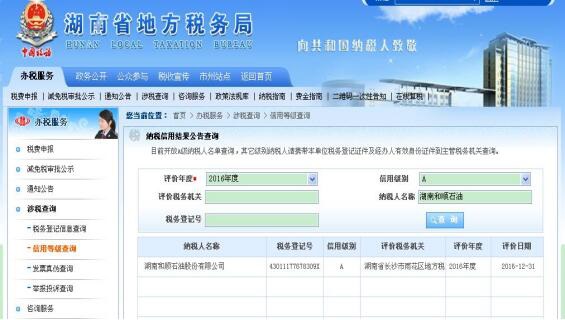 為推進社會誠信體系建設(shè),湖南省國稅局、地稅局按照國家稅務(wù)總局《納稅信用管理辦法(試行)》(總局公告2014第40號),開展了2016年度納稅信用聯(lián)合評價工作,我司再次獲得納稅信用“金字代言——A級納稅人”的稱號,我司已連續(xù)三年獲此榮譽,展現(xiàn)了誠信納稅的良好企業(yè)形象。
